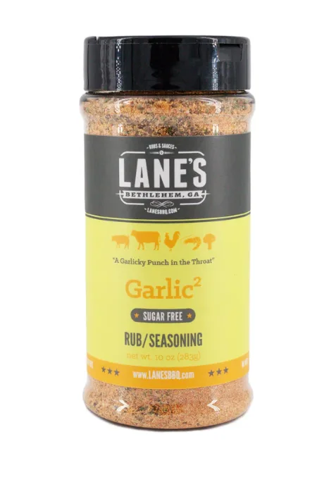 Lane’s bbq garlic² rub is loaded for vampires. We dare you to find a rub with more garlic flavor. Pair it with sweet heat for an award-winning wing rub. Ingredients: garlic, salt onion, black pepper, parsley, oregano basil and tumeric.