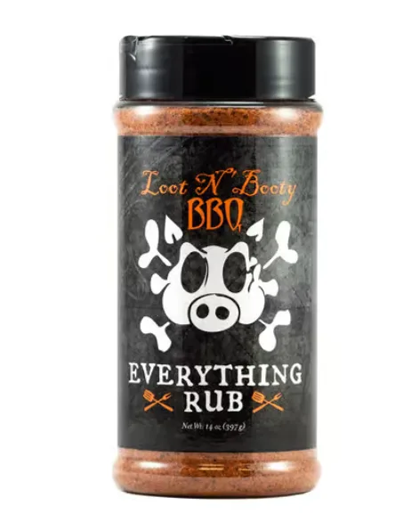 Loot N’ Booty BBQ Everything Rub, defines the true all-purpose proven on the BBQ circuit type of seasoning. It earns the title Everything Rub for its ability to compliment pork, chicken, brisket, burgers to guacamole, potato salad to even watermelon!